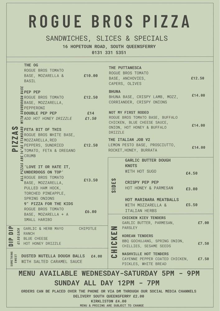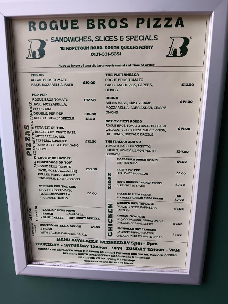 Located at 16 Hopetoun Road in South Queensferry, Rogue Bros nestles near the picturesque waterfront, a stone's throw away from stunning views of the iconic bridges. This laid-back eatery welcomes guests with a casual vibe and an accessible entrance.